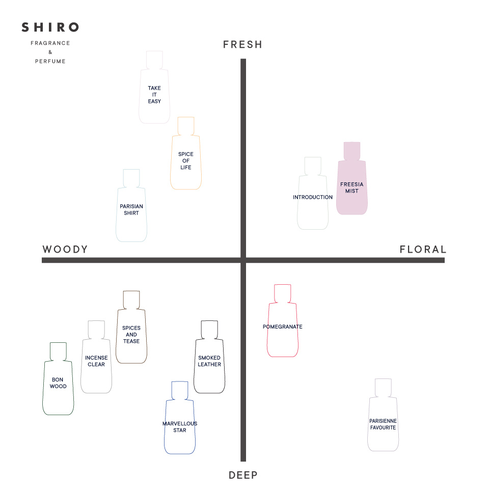 世界各国のパフューマーの記憶から生まれた12通りのストーリー。 ドラマティックに香る「SHIRO PERFUME」。 水のかわりに、徳島県の木頭柚子(きとうゆず)の蒸留水*1を配合。 パフューマーが厳選した香料をより深みのあるものに引き立たせます。 -STORY- 澄んだ空気に包まれたフラワーマーケット 花束を抱えて嬉しそうに通りを行き交う人たち 水やりされたばかりの花々は 太陽が反射しキラキラと輝いている by Male, Japan [TOP]アップル、アプリコット、ベルガモット [MIDDLE]グリーン、ローズ、ピーチ [LAST]ホワイトフローラル、ムスク <持続時間>約5~6時間 *1 ユズ果皮水 / 保湿・芳香成分 ■「サボン」「ホワイトリリー」及びSHIRO PERFUME「フリージアミスト」「イントロダクション」製品の香料変更に関するお知らせについて 詳細はこちら