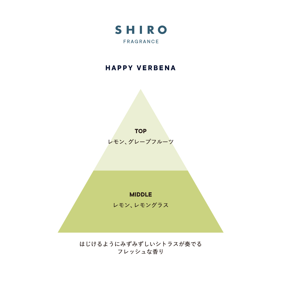 私たちSHIROは、「香りの力で笑顔を取り戻すことができないか」、「少しでも多くの方に元気とパワーを届けたい」という想いから、同年5月、『ハッピーヴァーベナ』を発売いたしました。