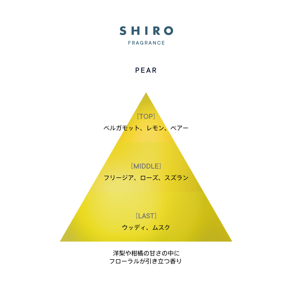 ウォータリーなテクスチャーで手肌にすっとなじみ、べたつきにくい仕上がりでアルコールでの手指消毒による乾燥や荒れが気になるときにもおすすめです。 アロエ*1や酒かす*2、シアバター*3配合のみずみずしい美容液が手肌に潤いを与え、なめらかな手触りを叶えます。 果樹園を思わせるみずみずしい洋梨の香りに、フリージアやスズランの上品なフローラルが引き立ちます。 *1 アロエベラ葉エキス、*2 酒粕、*3 シア脂油( いずれも保湿)