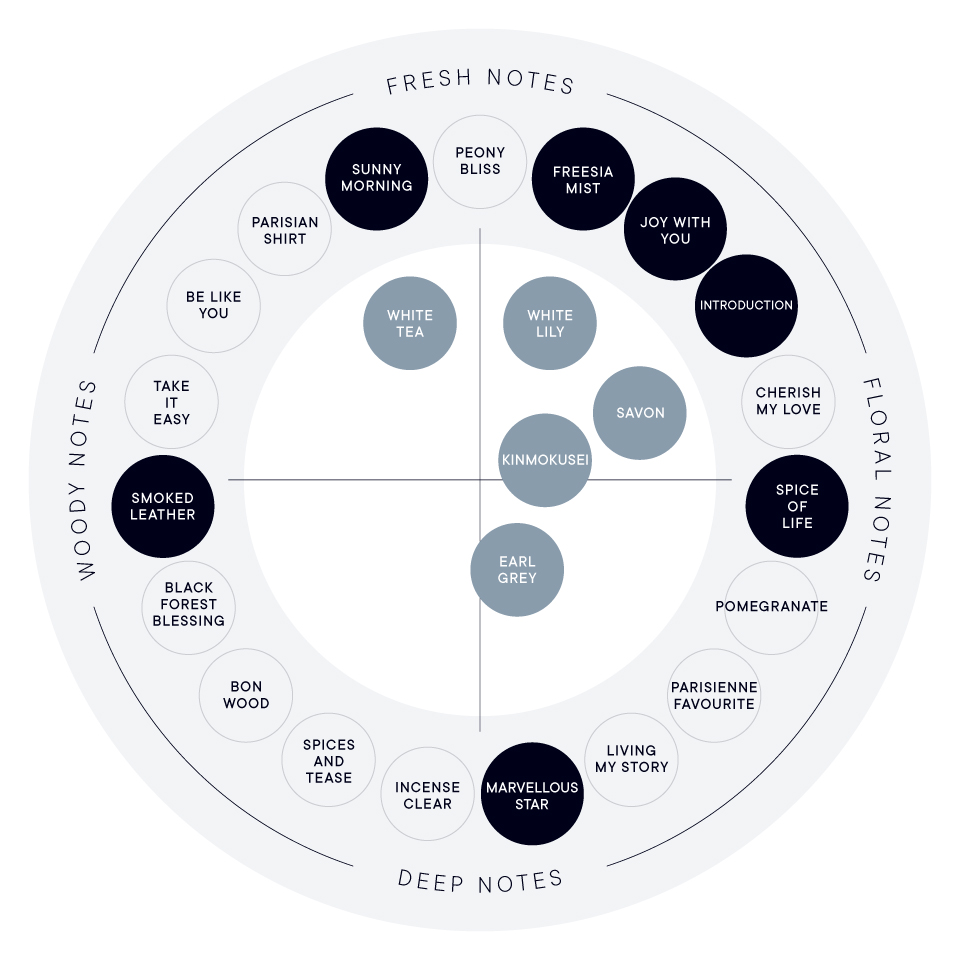 FREESIA MIST,JOY WITH YOU,SUNNY MORNING,INTRODUCTION,SPICE OF LIFE,SMOKED LEATHER,MARVELLOUS STAR エタノール、香料、溶剤