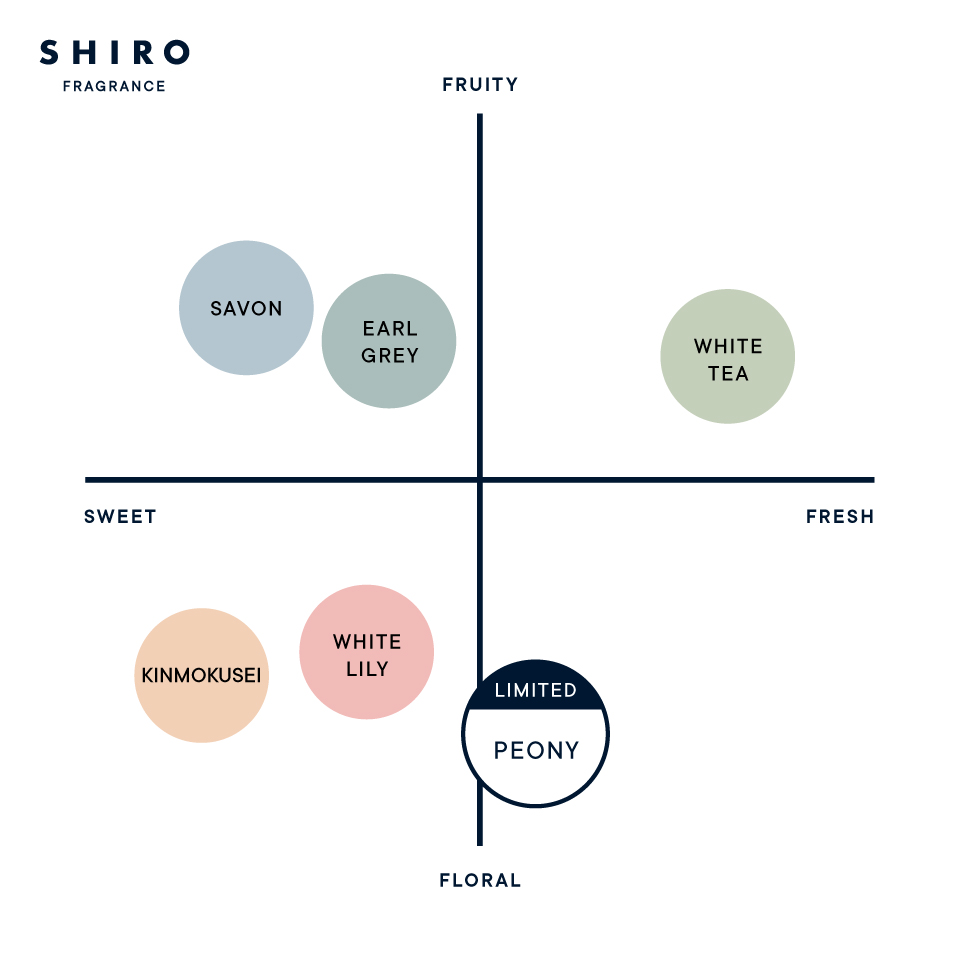 ・過去に販売していたピオニーと同じ香りですか? →2023年のピオニーと同じ香りです。2022年9月に国際規制によって一部香料が変更となり香料変更を行っておりますので、2022年以前のピオニーとは少し香りが異なります。変更点として、よりナチュラルなピオニーそのものに近い香りに近づけられるように、ピオニーのフレッシュ感、透明感を引き出した香りに仕上げております。