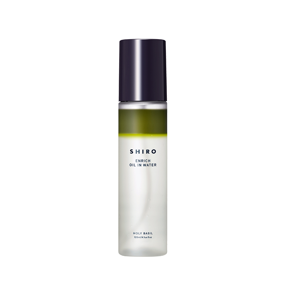 澄んだ透明な下層はホーリーバジルの蒸留水*1をベースに、上層は蒸留時に抽出した精油*2と、オリーブ果実油に漬けた浸出油*3を配合しています。季節の変わり目でゆらぎがちな肌に、水分とオイルの両方をバランスよく与えながら、しっとりと保湿します。