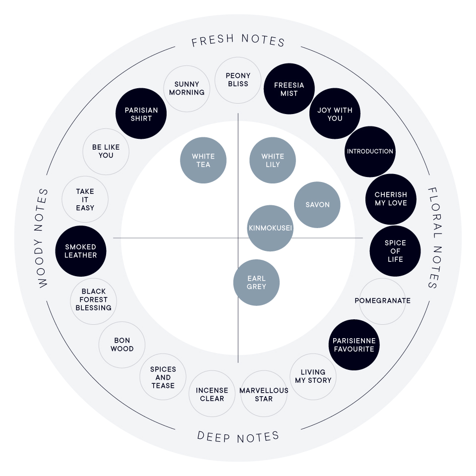 INTRODUCTION,SPICE OF LIFE,SMOKED LEATHER エタノール、香料、DPG、ヤマヨモギ葉水、トコフェロール、PPG-2-デセス-7、PCAイソステアリン酸PEG-40水添ヒマシ油