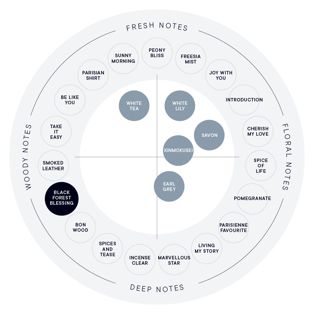 BLACK FOREST BLESSINGは、力強さとやわらかさが共存するウッディの香り。