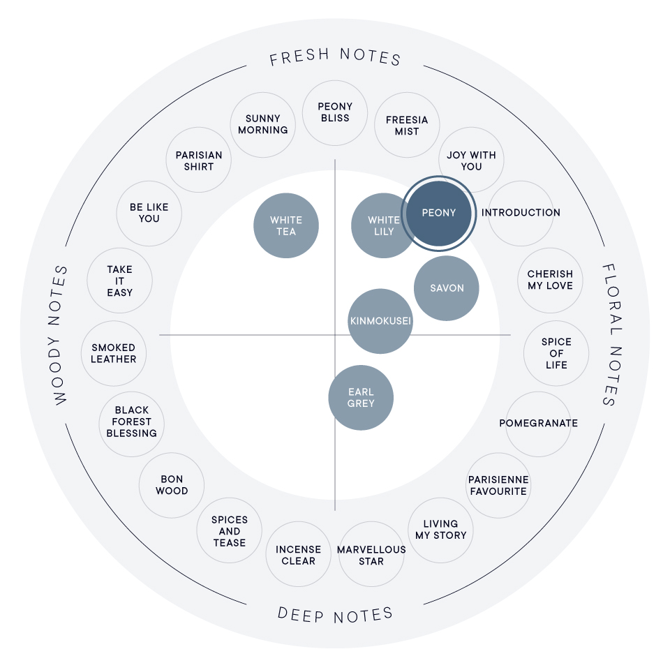 香りはそのままに、水の配合量を見直したことで、アルコール*特有のツンとした立ち上がりが軽減され、吹きかけた瞬間から「ピオニー」の香りを堪能できるようになりました。