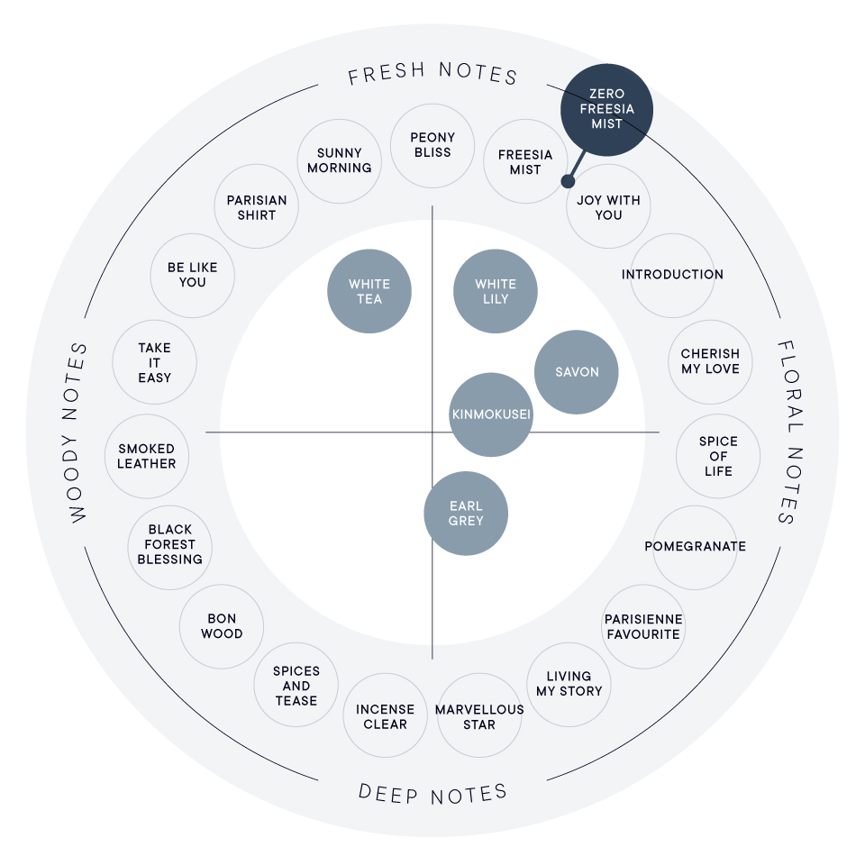 SHIRO PERFUMEの中でも、不動の人気を誇る「フリージア ミスト」に、限定フレグランスの「ペアー」を加えることで、フレッシュな花々と果実の中に、芳醇でみずみずしい洋梨の香りが広がります。