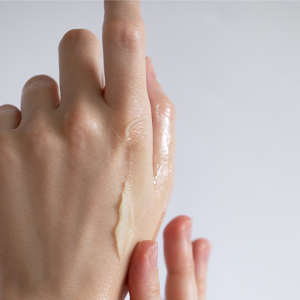 クリームがやわらかくなれば、固形のクリームからまるでオイルやミルクに近いテクスチャーとなり、指先などへ広げやすくなります。温めたクリームがなじみやすくなるように、一度手の甲を使って広げましょう。