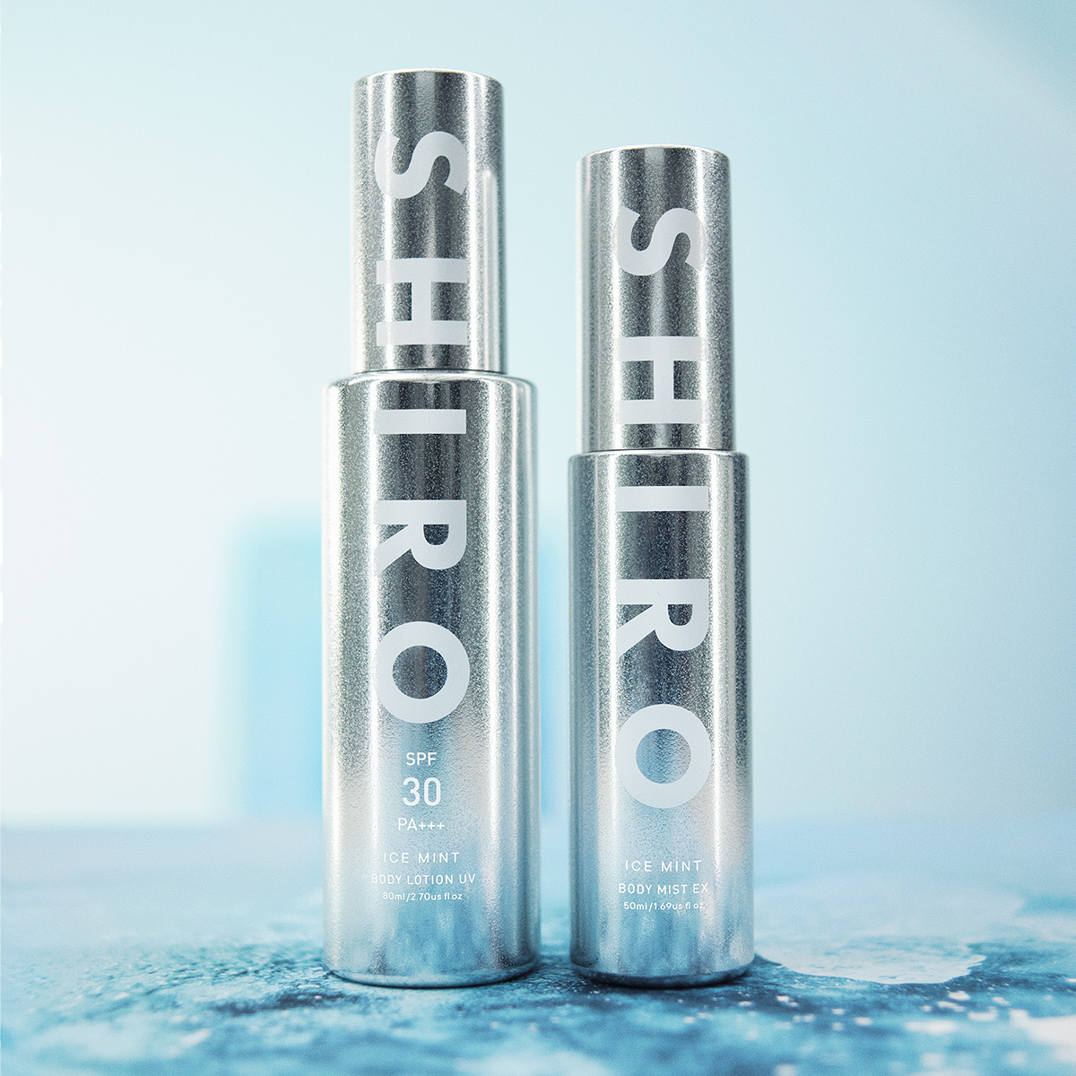 暑い日々を快適に過ごすことができる2種の限定製品は、まるで氷のように輝く今年だけの限定ボトル。粒感のあるマットな質感と、シンプルながらインパクトのあるSHIROの文字が、太陽の光が当たるたびきらめきます。毎日バッグに忍ばせて、暑さとUV対策をしながら、取り出すたびにときめくデザインをお楽しみください。